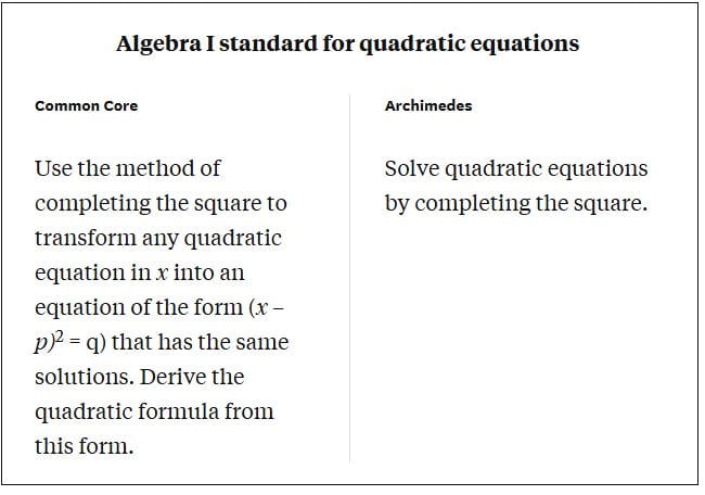 Their key goal, though, is “lucidity” — standards that are easier for teachers and parents to understand. In an introduction to the Archimedes standards, the association contrasts a Common Core second grade standard on addition and subtraction that takes 67 words to explain with Archimedes’ 24-word version.