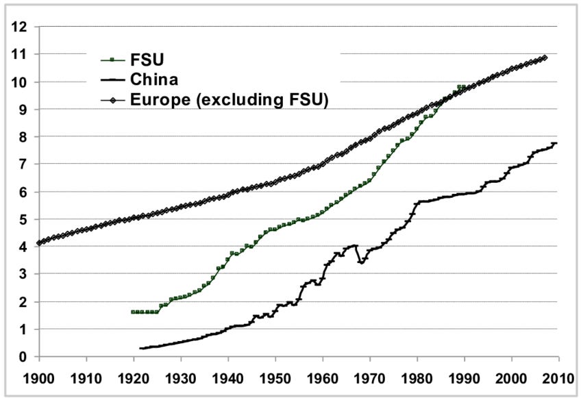 Average Years of Education in Europe, China, and the USSR. Didenko, Flodvari, & Van Leeuwen (2012).