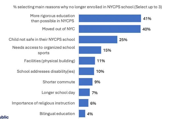 Vaites, though, looks at exist survey data that NYC collects from parents who are pulling their children out of New York City schools entirely. This data shows that these parents did say they cared about having advanced academic options and challenging learning experiences.
